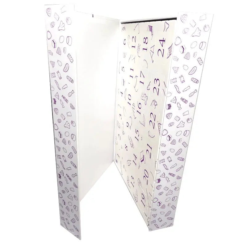 We've manufactured our Boxes to be continuously reusable for many Christmases to come! These are manufactured as high-quality magnetized cardboard Boxes with a Plastic insert and a Cardboard Number card that sticks onto the inside of the box. If you choose to purchase a Christmas Calendar next year and already have a box, all you'll need to buy from us is the 2026 number card and 24 new bags of mystery candies. Or, if you choose so, you can refill your Calendar yourself! The Insert and number card can be recycled, but please keep the box